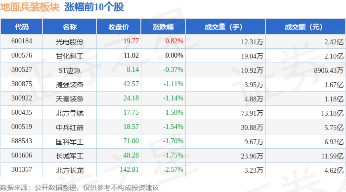 从资金流向上来看,当日地面兵装板块主力资金净流出6.71亿元,游资资金净流入9882.47万元,散户资金净流入5.73亿元。地面兵装板块个股资金流向见下表: