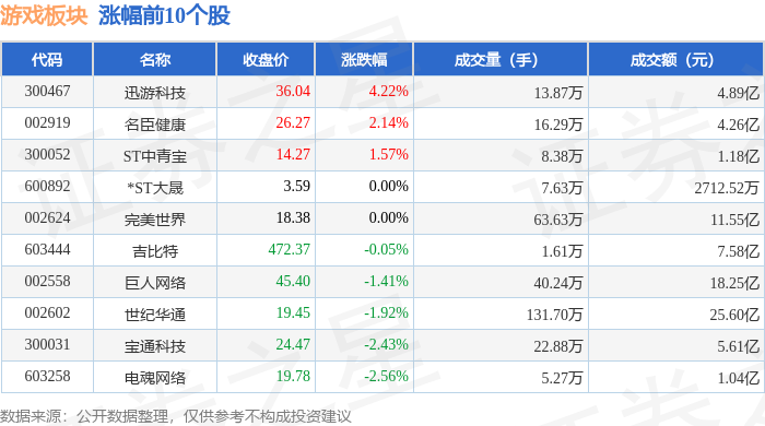 从资金流向上来看,当日游戏板块主力资金净流出34.86亿元,游资资金净流入4.33亿元,散户资金净流入30.53亿元。游戏板块个股资金流向见下表: