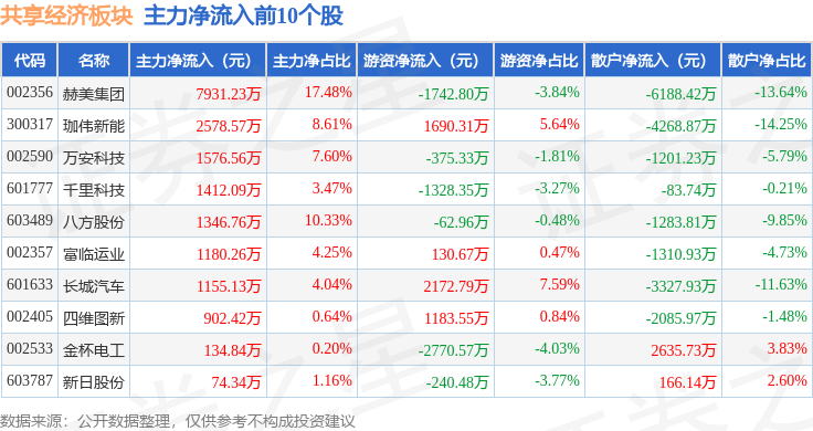 从资金流向上来看,当日共享经济板块主力资金净流出11.5亿元,游资资金净流入2.76亿元,散户资金净流入8.74亿元。共享经济板块个股资金流向见下表:
