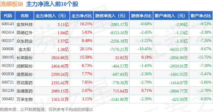 从资金流向上来看,当日流感板块主力资金净流出3.58亿元,游资资金净流入2517.85万元,散户资金净流入3.33亿元。流感板块个股资金流向见下表: