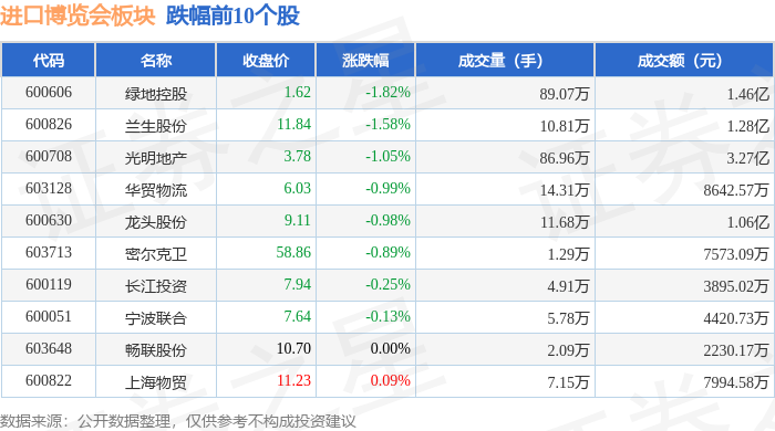从资金流向上来看,当日进口博览会板块主力资金净流入1.02亿元,游资资金净流出5451.62万元,散户资金净流出4721.56万元。进口博览会板块个股资金流向见下表: