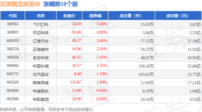 从资金流向上来看,当日百度概念股板块主力资金净流出94.91亿元,游资资金净流入12.71亿元,散户资金净流入82.21亿元。百度概念股板块个股资金流向见下表: