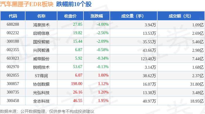 从资金流向上来看,当日汽车黑匣子EDR板块主力资金净流入5.31亿元,游资资金净流出1.26亿元,散户资金净流出4.05亿元。汽车黑匣子EDR板块个股资金流向见下表: