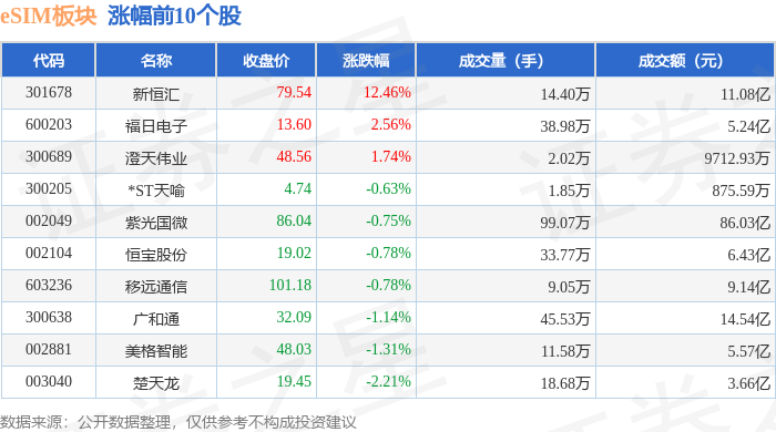 从资金流向上来看,当日eSIM板块主力资金净流出11.11亿元,游资资金净流入3.99亿元,散户资金净流入7.12亿元。eSIM板块个股资金流向见下表: