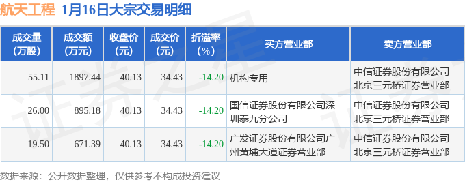 证券之星消息,1月16日航天工程发生大宗交易,交易数据如下: