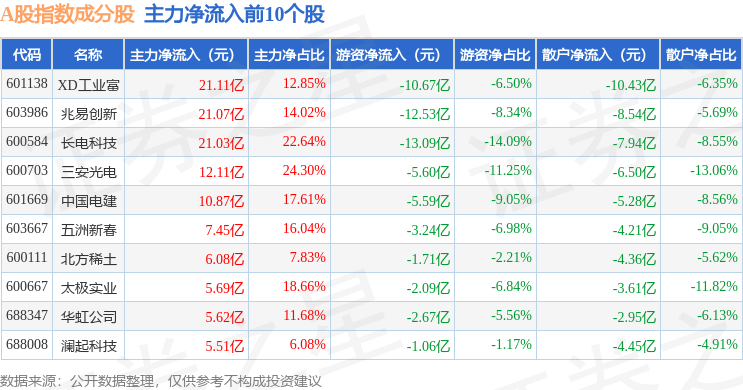 资金流向方面,A股指数(000002)成份股当日主力资金净流出合计160.26亿元,游资资金净流入合计42.59亿元,散户资金净流入合计117.68亿元。成份股资金流向详情见下表: