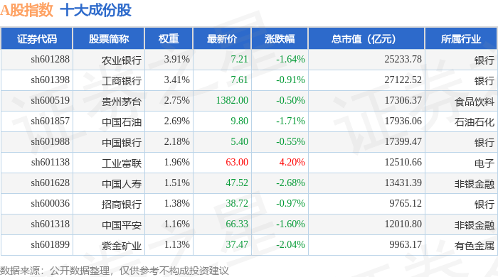 A股指数(000002)十大成份股详情如下: