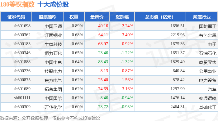 180等权(000051)指数十大成份股详情如下: