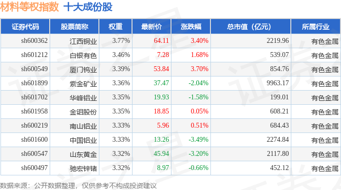 材料等权(000071)指数十大成份股详情如下:
