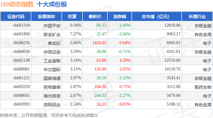 证券之星消息,1月16日,180动态(000123)指数报收于7559.17点,涨0.0%,成交3137.84亿元,换手率2.01%。当日该指数成份股中,上涨的有36家,长电科技以10.0%的涨幅领涨,下跌的有52家,三六零以5.29%的跌幅领跌。