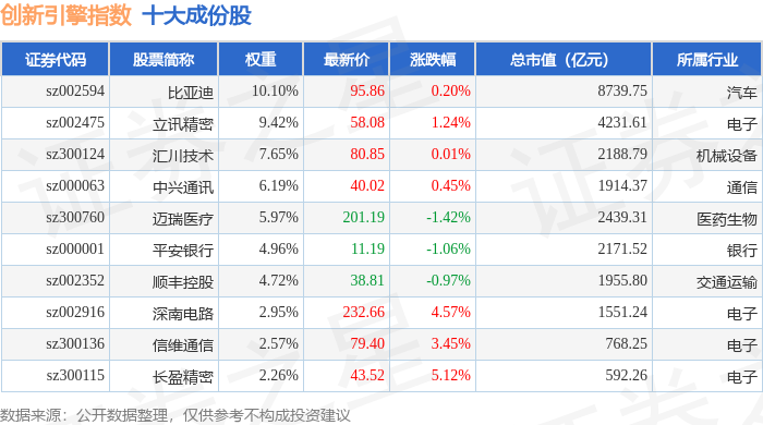 创新引擎(399050)指数十大成份股详情如下: