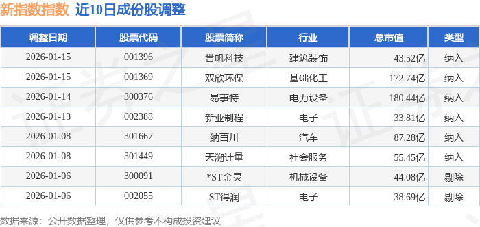 近10日内新指数(399100)成份股做了调整,新纳入了6只股票,剔除了2只股票。