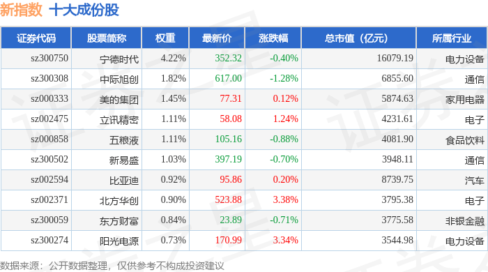 新指数(399100)十大成份股详情如下: