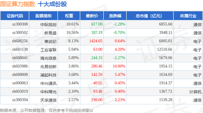 证券之星消息,1月16日,国证算力(399363)指数报收于9937.13点,涨0.9%,成交2607.84亿元,换手率2.04%。当日该指数成份股中,上涨的有25家,佰维存储以17.19%的涨幅领涨,下跌的有25家,烽火通信以9.4%的跌幅领跌。