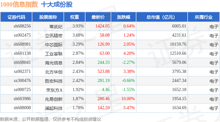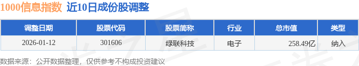 近10日内1000信息(399388)指数成份股做了调整,新纳入了1只股票。