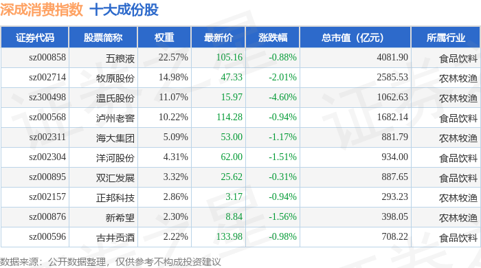 资金流向方面,深成消费(399684)指数成份股当日主力资金净流出合计11.7亿元,游资资金净流入合计1.68亿元,散户资金净流入合计10.02亿元。成份股资金流向详情见下表: