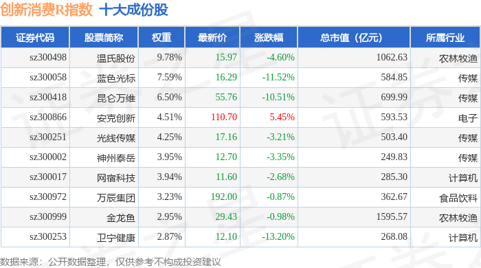创新消费R(470041)指数十大成份股详情如下: