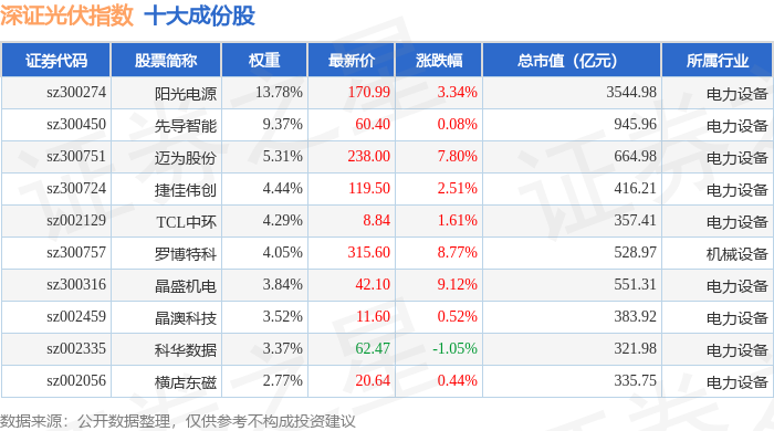 资金流向方面,深证光伏(970035)指数成份股当日主力资金净流入合计17.55亿元,游资资金净流出合计5.99亿元,散户资金净流出合计11.56亿元。成份股资金流向详情见下表:
