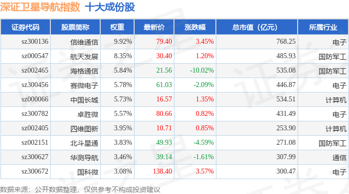 深证卫星导航(970050)指数十大成份股详情如下: