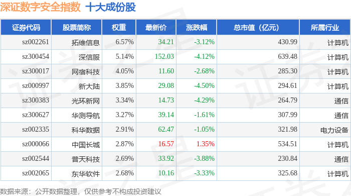 深证数字安全(970052)指数十大成份股详情如下: