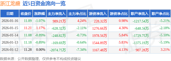 1月16日的资金流向数据方面,主力资金净流入989.21万元,占总成交额4.24%,游资资金净流入228.32万元,占总成交额0.98%,散户资金净流出1217.54万元,占总成交额5.21%。