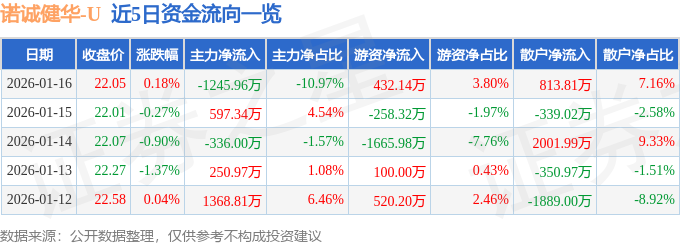 证券之星消息,截至2026年1月16日收盘,诺诚健华(688428)报收于22.05元,上涨0.18%,换手率1.92%,成交量5.16万手,成交额1.14亿元。