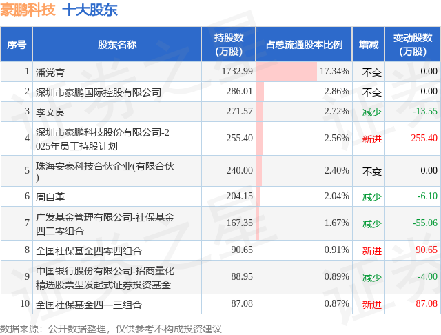 根据豪鹏科技2025年三季报公布的十大股东详情如下: