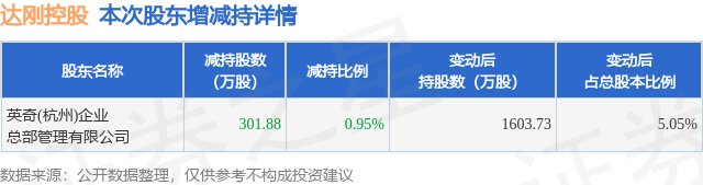 证券之星消息,1月16日达刚控股发布公告《达刚控股:关于持股5%以上股东减持计划期限届满暨减持股份实施情况的公告》,其股东英奇(杭州)企业总部管理有限公司于2025年10月21日至2025年10月27日间合计减持301.88万股,占公司目前总股本的0.9505%,变动期间该股股价上涨3.26%,截止10月27日收盘报7.61元。
