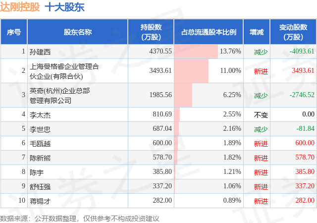 根据达刚控股2025年三季报公布的十大股东详情如下:
