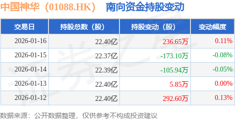 证券之星消息,1月16日南向资金增持236.65万股中国神华(01088.HK)。近5个交易日中,获南向资金增持的有3天,累计净增持256.06万股。近20个交易日中,获南向资金减持的有13天,累计净减持1873.75万股。截至目前,南向资金持有中国神华(01088.HK)22.4亿股,占公司已发行普通股的66.3%。