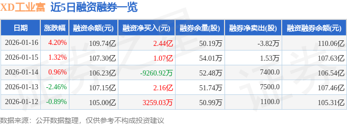 XD工业富融资融券信息显示,融资方面,当日融资买入17.56亿元,融资偿还15.12亿元,融资净买入2.44亿元,净买入额两市排名第19。融券方面,融券卖出1.85万股,融券偿还5.67万股,融券余量50.19万股,融券余额3162.22万元。融资融券余额110.06亿元。