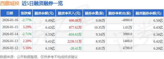 西藏城投融资融券信息显示,融资方面,当日融资买入4944.63万元,融资偿还4254.55万元,融资净买入690.08万元。融券方面,融券卖出2000.0股,融券偿还6900.0股,融券余量9.86万股,融券余额138.53万元。融资融券余额6.5亿元。