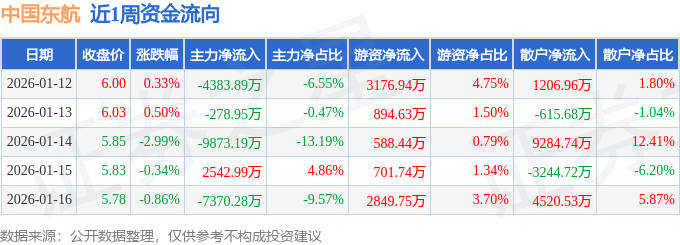 资金流向数据方面,本周中国东航主力资金合计净流出1.94亿元,游资资金合计净流入8211.5万元,散户资金合计净流入1.12亿元。本周资金流向一览见下表: