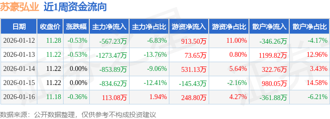 资金流向数据方面,本周苏豪弘业主力资金合计净流出3416.13万元,游资资金合计净流入1621.65万元,散户资金合计净流入1794.48万元。本周资金流向一览见下表: