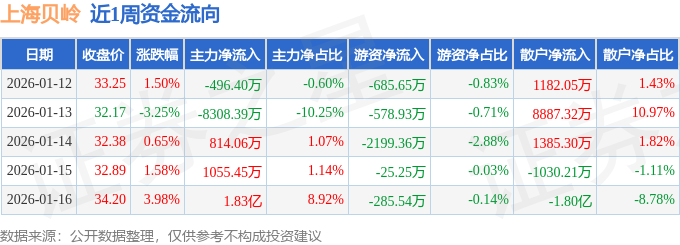 资金流向数据方面,本周上海贝岭主力资金合计净流入1.14亿元,游资资金合计净流出3774.73万元,散户资金合计净流出7607.23万元。本周资金流向一览见下表: