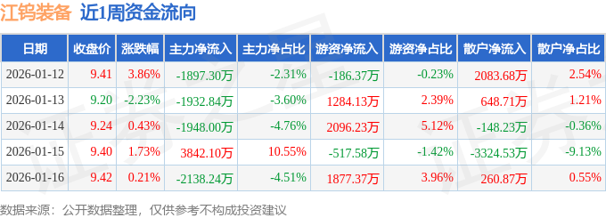 资金流向数据方面,本周江钨装备主力资金合计净流出4074.28万元,游资资金合计净流入4553.78万元,散户资金合计净流出479.5万元。本周资金流向一览见下表: