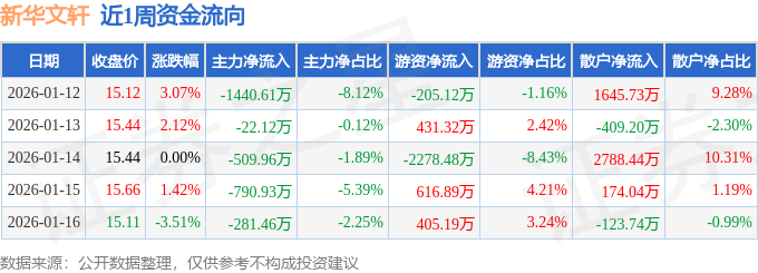 资金流向数据方面,本周新华文轩主力资金合计净流出3045.08万元,游资资金合计净流出1030.19万元,散户资金合计净流入4075.27万元。本周资金流向一览见下表: