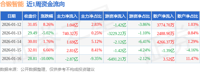 资金流向数据方面,本周合锻智能主力资金合计净流入2.74亿元,游资资金合计净流出5.92亿元,散户资金合计净流入3.18亿元。本周资金流向一览见下表: