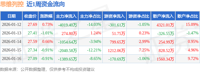 资金流向数据方面,本周思维列控主力资金合计净流出8229.48万元,游资资金合计净流入1591.16万元,散户资金合计净流入6638.32万元。本周资金流向一览见下表: