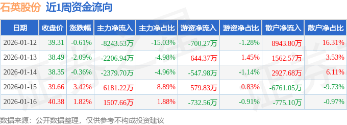 资金流向数据方面,本周石英股份主力资金合计净流出5141.3万元,游资资金合计净流出756.61万元,散户资金合计净流入5897.91万元。本周资金流向一览见下表: