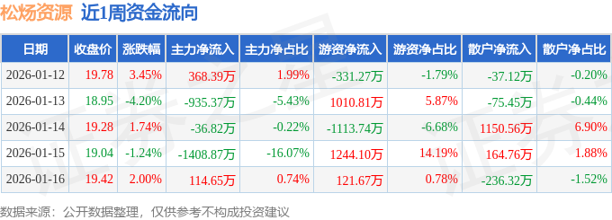 资金流向数据方面,本周松炀资源主力资金合计净流出1898.01万元,游资资金合计净流入931.58万元,散户资金合计净流入966.43万元。本周资金流向一览见下表: