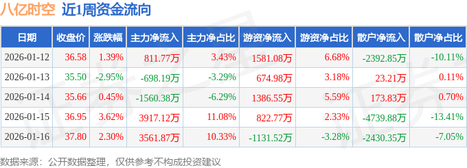 资金流向数据方面,本周八亿时空主力资金合计净流入6032.19万元,游资资金合计净流入3333.86万元,散户资金合计净流出9366.05万元。本周资金流向一览见下表: