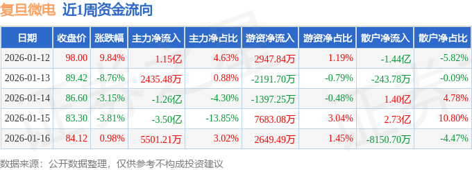 沪深股通持股方面,截止2026年1月16日收盘,复旦微电沪股通持股数为301.07万股,占流通股比为56.0%。