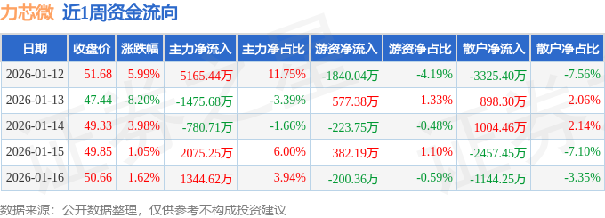 资金流向数据方面,本周力芯微主力资金合计净流入6328.93万元,游资资金合计净流出1304.58万元,散户资金合计净流出5024.34万元。本周资金流向一览见下表: