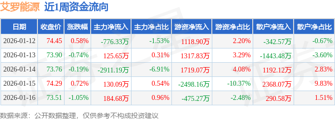 资金流向数据方面,本周艾罗能源主力资金合计净流出3247.1万元,游资资金合计净流入1182.37万元,散户资金合计净流入2064.72万元。本周资金流向一览见下表: