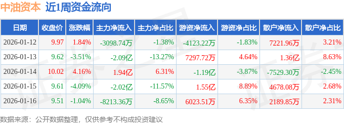 沪深股通持股方面,截止2026年1月16日收盘,中油资本深股通持股数为1.09亿股,占流通股比为86.0%。