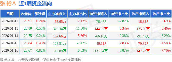 资金流向数据方面,本周张 裕A主力资金合计净流出249.43万元,游资资金合计净流出79.94万元,散户资金合计净流入329.36万元。本周资金流向一览见下表: