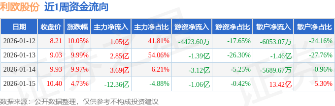 资金流向数据方面,本周利欧股份主力资金合计净流出4.77亿元,游资资金合计净流出6.01亿元,散户资金合计净流入10.78亿元。本周资金流向一览见下表: