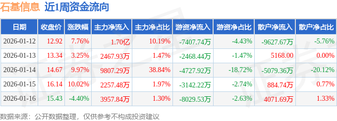 沪深股通持股方面,截止2026年1月16日收盘,石基信息深股通持股数为2505.38万股,占流通股比为157.0%。