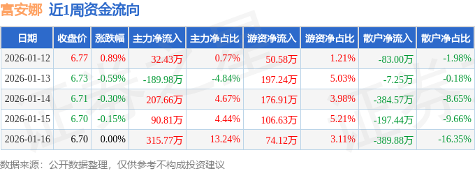 资金流向数据方面,本周富安娜主力资金合计净流入456.68万元,游资资金合计净流入605.47万元,散户资金合计净流出1062.16万元。本周资金流向一览见下表: